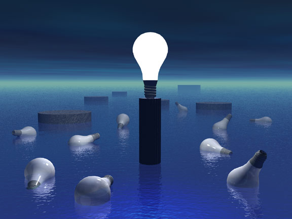 One bulb lit on pedestal